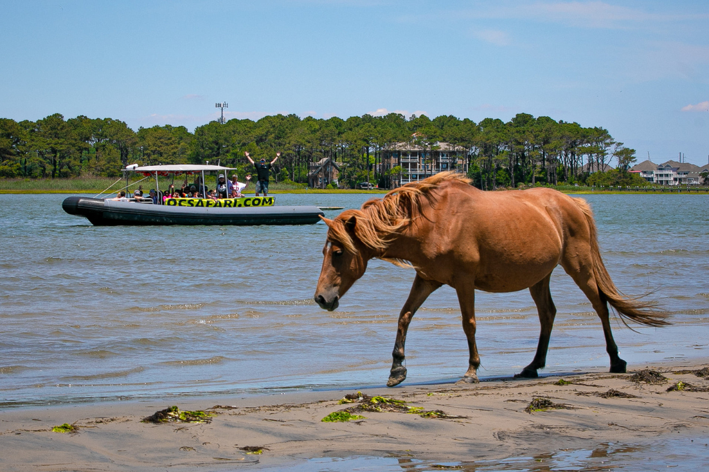 Wild ponies can be seen on Assateague Island. The wild ponies are best viewed from Ocean City’s #1 Dolphin & Wild Pony Tour, the Safari Boat Tour.